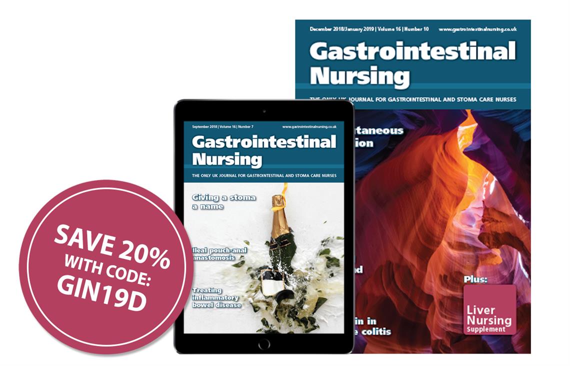 is a peer-reviewed journal to covering all aspects of gastroenterology and stoma care. Published 10 times a year, the journal is essential reading for all nurses specialising in gastrointestinal care who wish to provide the best possible care for their patients. It publishes a wide range of evidence-based clinical and practical features, providing essential information for your practice and your personal development.